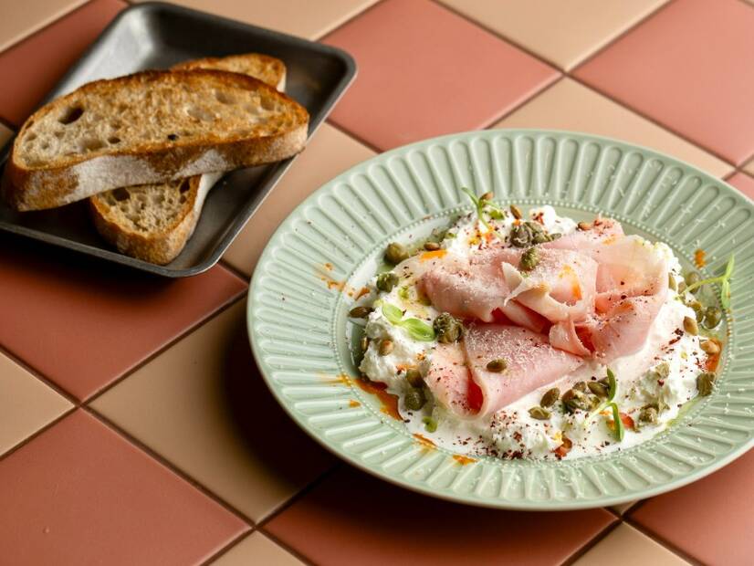 Ніжна намазка на основі сиру, вершків та сметани, доповнена соковитим прошуто котто та пікантними каперсами з насінням гарбуза та краплями червоної олійки, пармезаном. Подається з ароматним подовим хлібом власної випічки.