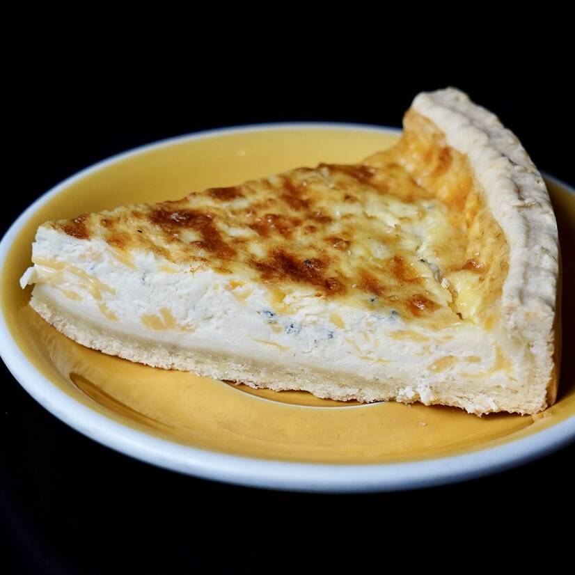 Запечений пиріг на основі пісочного тіста та таких видів сиру як моцарела, дор блю, чедер та сулугуні із вершками та яйцями.
