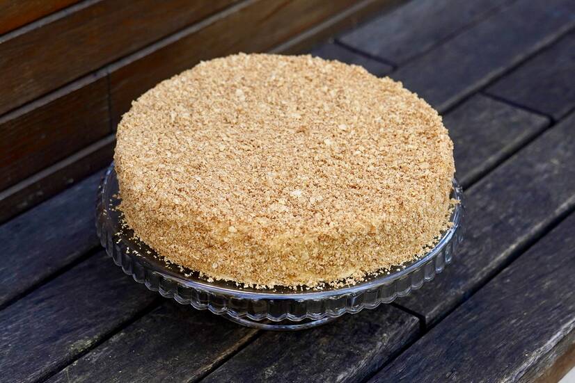 Торт родом з дитинства, такий яким його пекла мама чи бабуся :) Складається з великої кількості тонких коржів з листового тіста перемащених класичним заварним кремом.