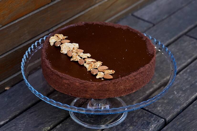 Ретро-торт. Шоколадні коржі з медового тіста і крем з сиру та вершків. Покритий глазур'ю з натурального шоколаду